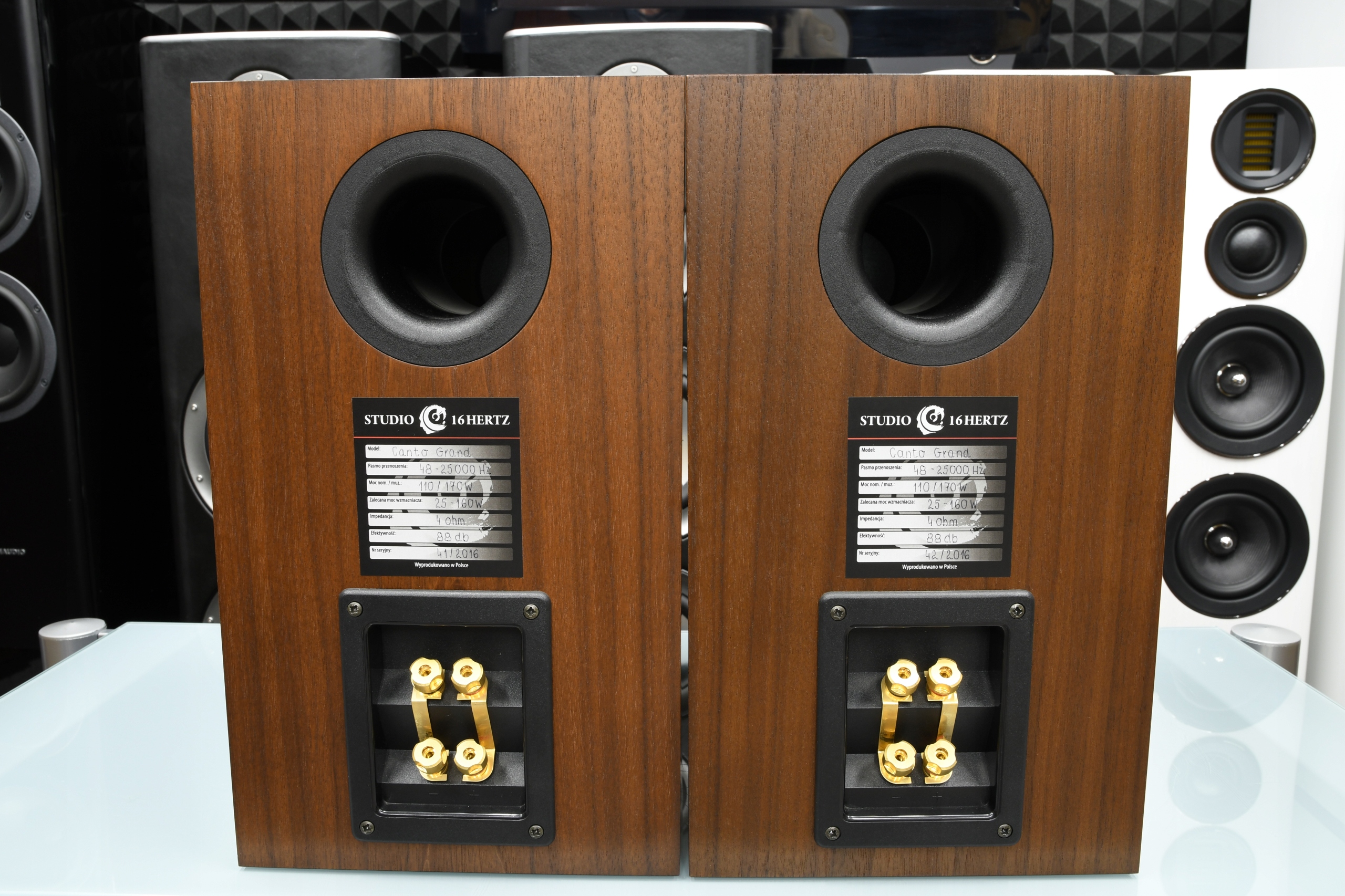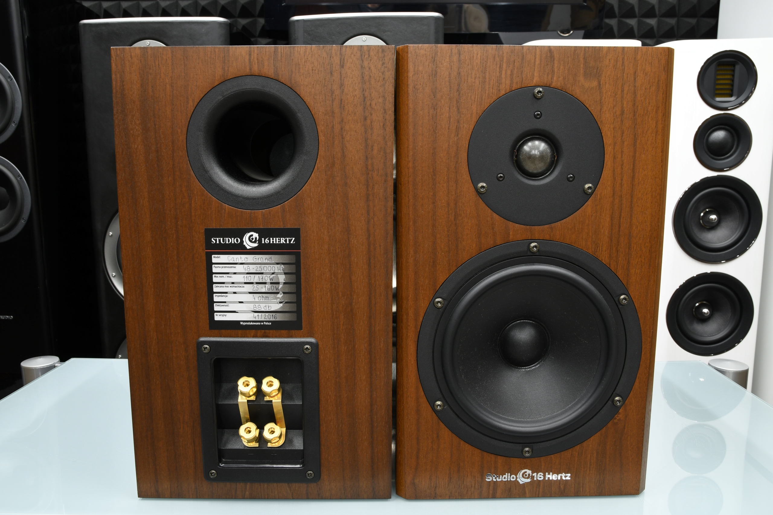Kolumny Studio 16 Hertz Canto Grand w stanie perfekcyjnym, zakupione bezpośrednio u Grzegorza Rogali w Studio 16 Hertz w 2016 roku. To para znakomicie zachowanych monitorów w wykończeniu orzechowym, z przetwornikami w idealnym stanie oraz kompletem maskownic. Brzmieniowo oferują pełną, dynamiczną prezentację z kapitalną średnicą i bardzo dobrą kontrolą basu – to charakterystyczny styl konstrukcji Canto Grand, cenionych przez wymagających melomanów.